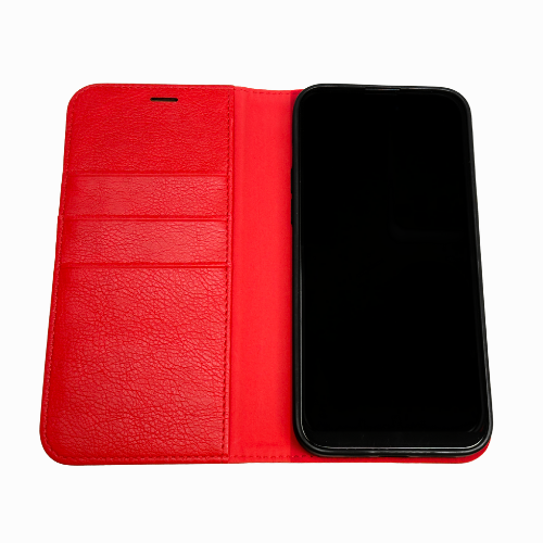 Protect your iPhone 14 Pro Clamshell PU Leather Case Red. Designed specifically for this model, it ensures a perfect fit and offers the convenience of MagSafe technology. Enjoy the sleek, matte finish while keeping your phone safe from scratches and drops.