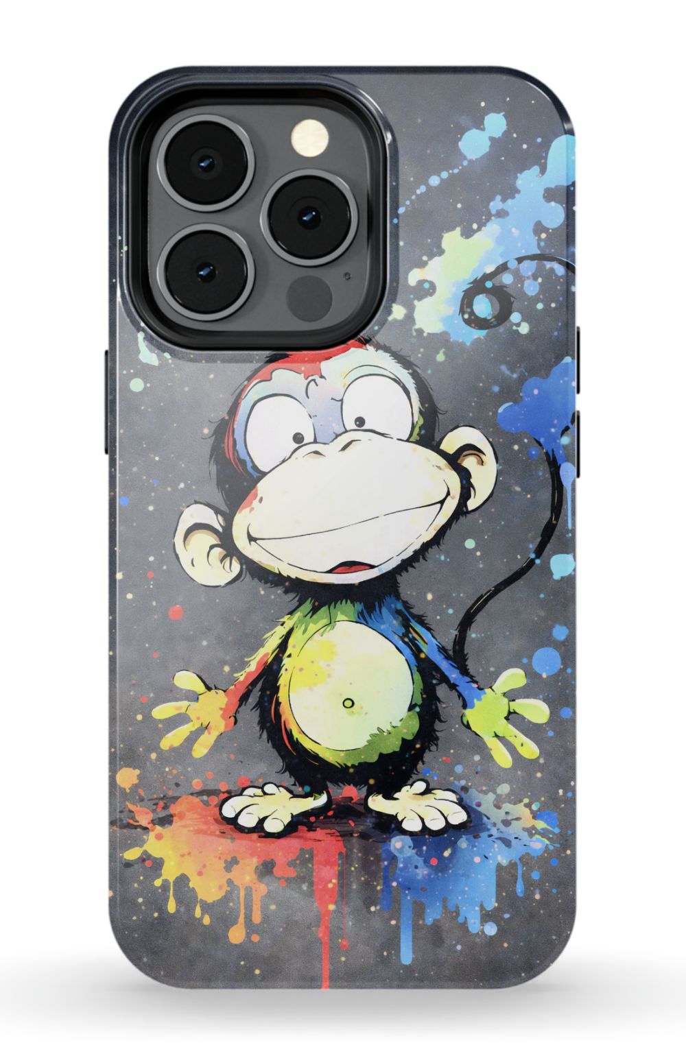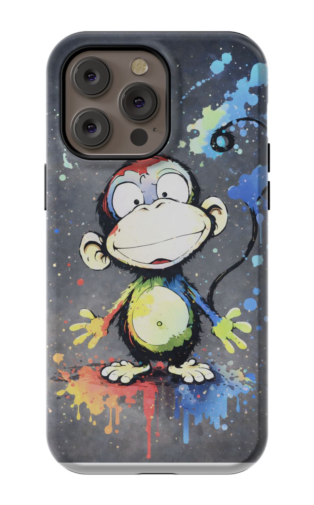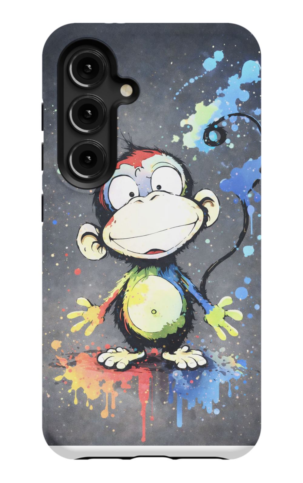 Cheerful monkey with vibrant paint splashes