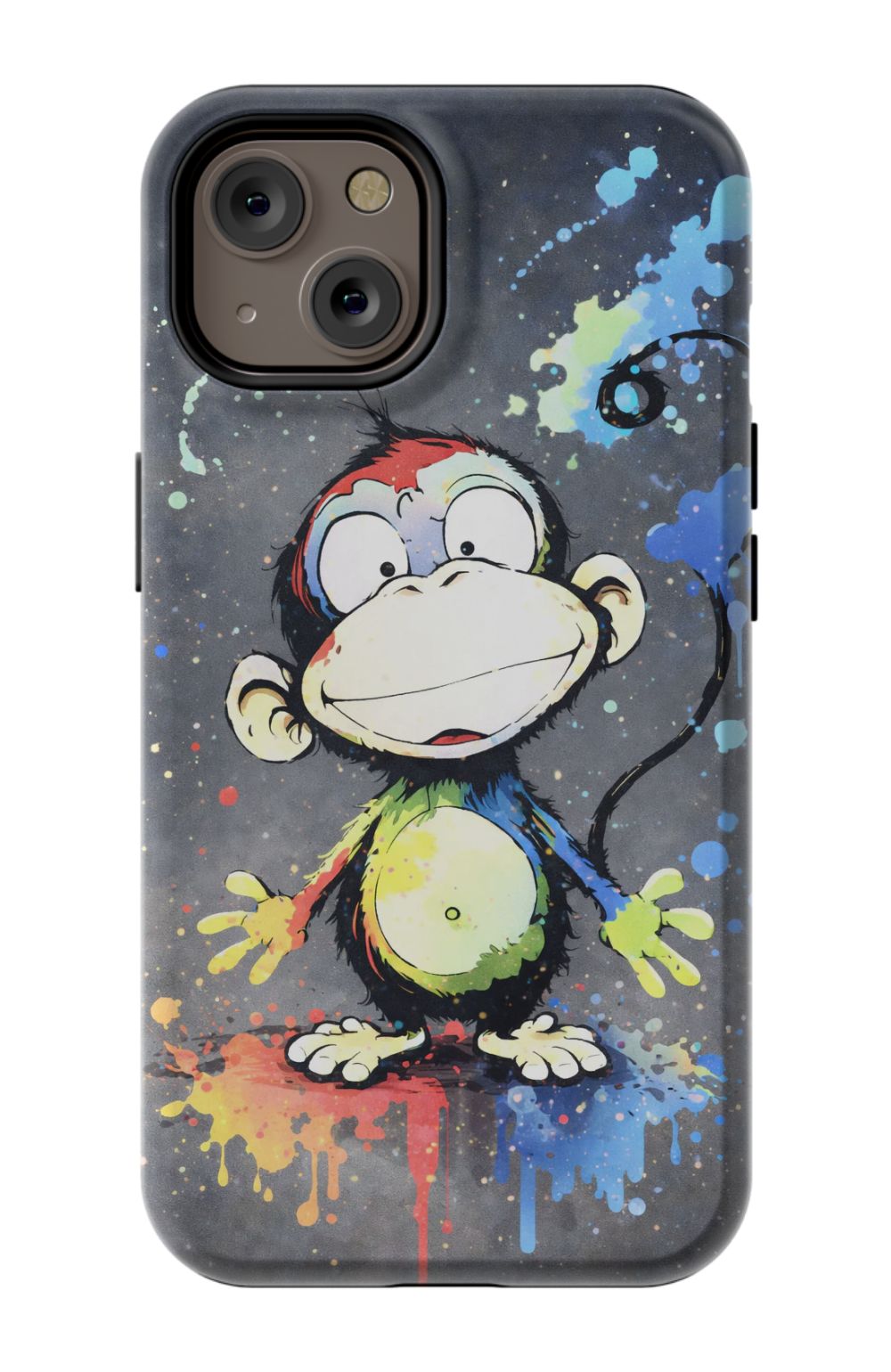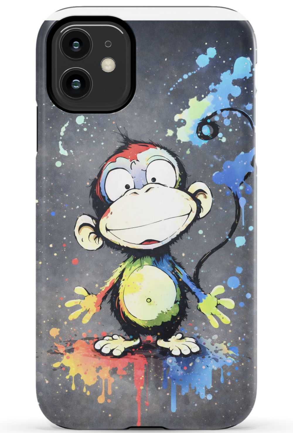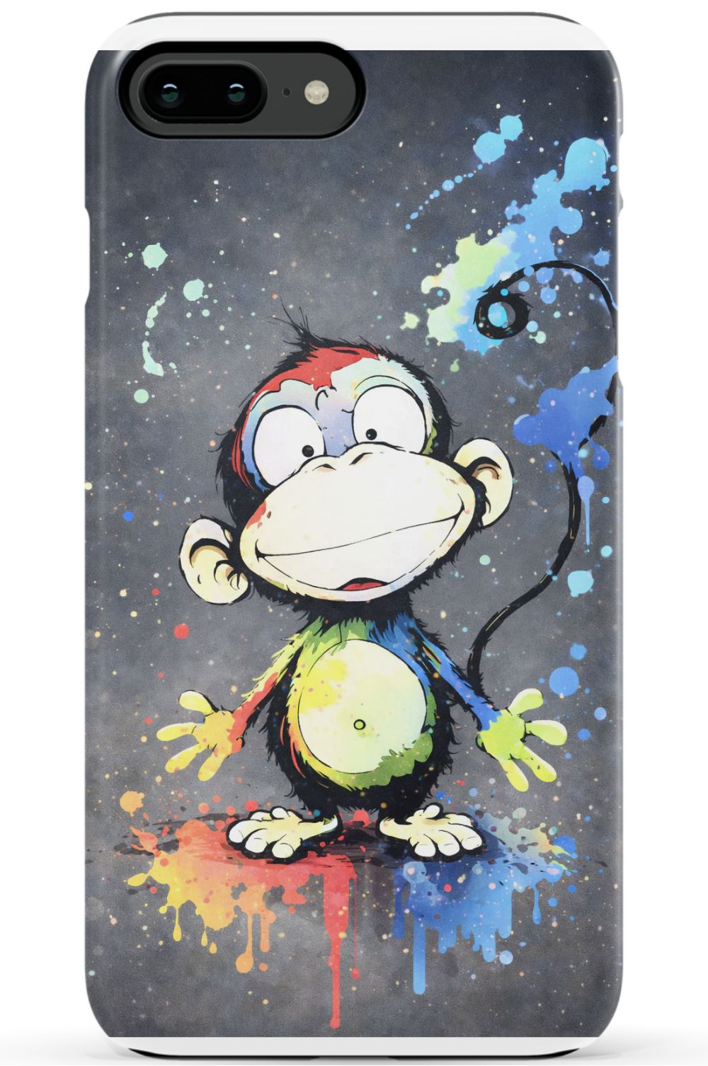 Cheerful monkey with vibrant paint splashes